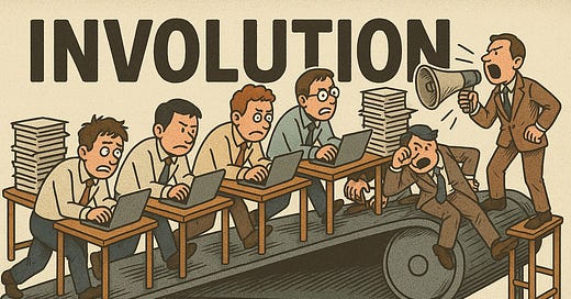 Why does involution emerge so easily in China? Returning to Geertz’s definition, involution refers to a stage where a system reaches a developmental ceiling and cannot evolve into a higher form. It implies intensifying internal competition over limited resources without generating meaningful progress.